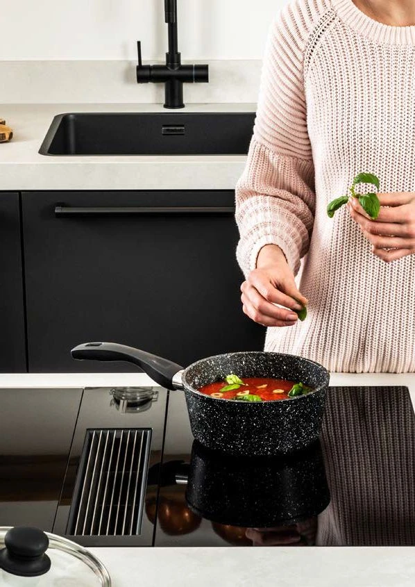 De pannen uit de Westinghouse Marble Collection zijn perfect voor in ieder huishouden! De pannen zijn voorzien van een innovatieve anti-aanbaklaag die 100% gegarandeerd vrij is van PFOA en andere schadelijke stoffen. Ze hebben een snelle en gelijkmatige warmteverdeling. Ook zijn de pannen gemakkelijk te reinigen in de vaatwasser en geschikt voor alle soorten warmtebronnen. Bij deze collectie heb je de keuze uit pannen met een zwarte of houten look handvat.